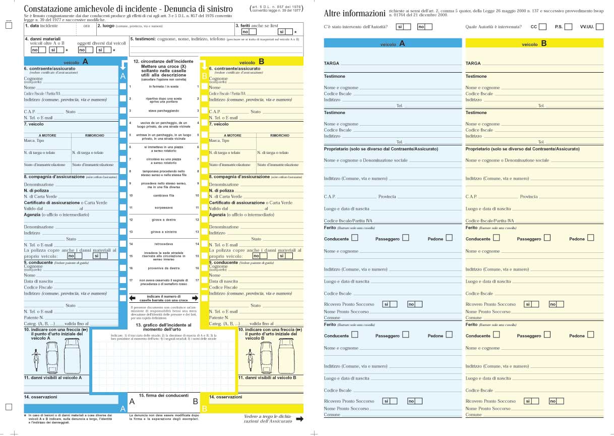 Si presti pertanto particolare attenzione nella compilazione e nella sottoscrizione del modulo blu di constatazione amichevole.